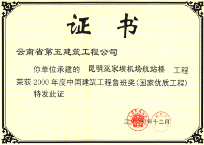 機場魯班獎狀